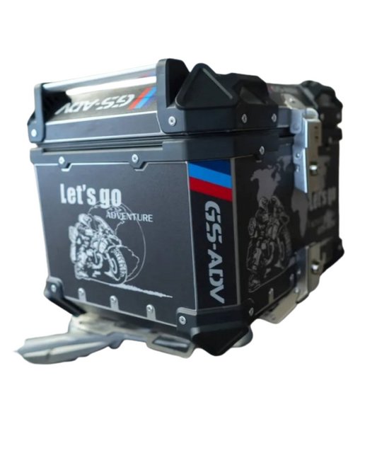 Zana Aluminium Sticker Top Box 45L with Back Rest Cushion for BMW 310 Gs / BMW / BMW F900 GS/GSA - Black - ZI-TB-015