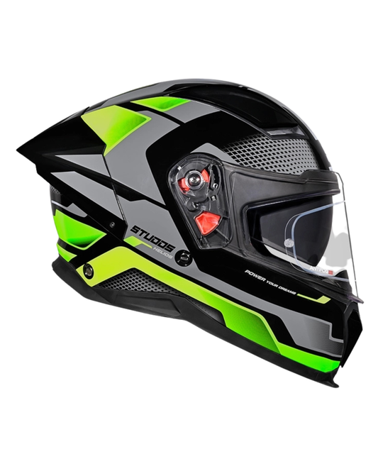 Studds Helios D1 Asphalt Decor Graphics Helmet - Gloss Black Green N3