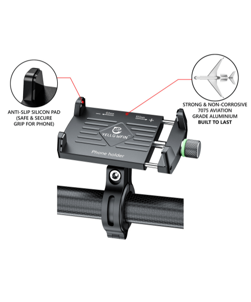 Yellowfin Claw Grip Aluminium Mobile Phone Holder Mount with 360 Rotation - M7 Black