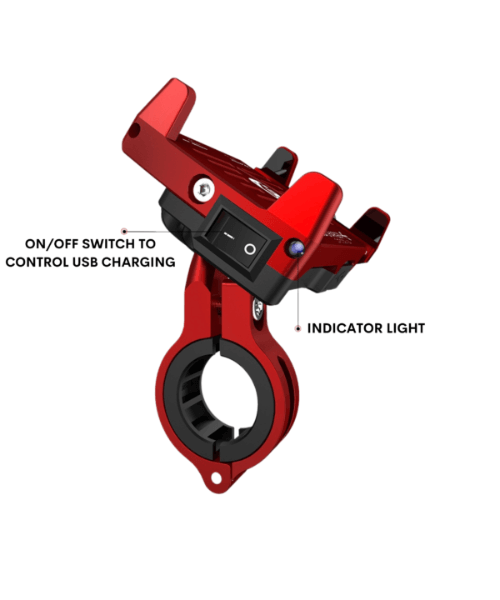 Yellowfin Claw-grip 2.5 A USB Mobile Holder with charger for Bikes - M6 Red