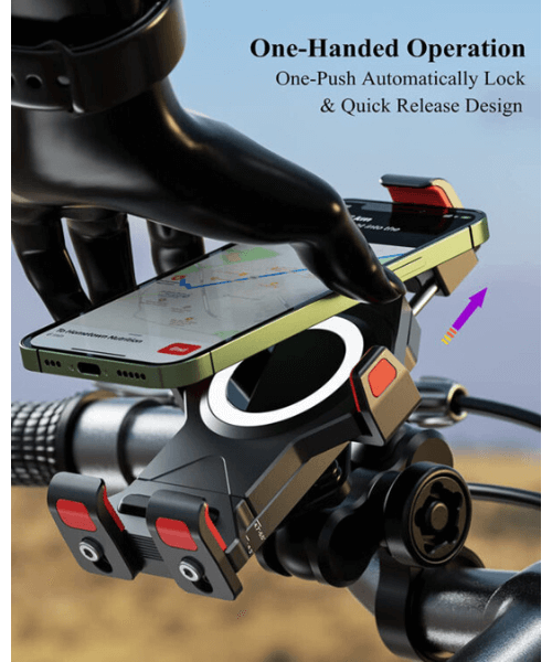 Yellowfin Aluminium Alloy Motorcycle Phone Mount with Vibration Dampener Secure Anti-Theft Lock | One-Push Auto Lock Handlebar M23-C1-Pro Elite - No Charger