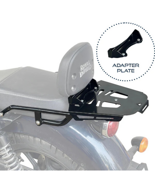 Auto Engina Top Rack with Backrest Adapter for Royal Enfield Meteor 350 - Black