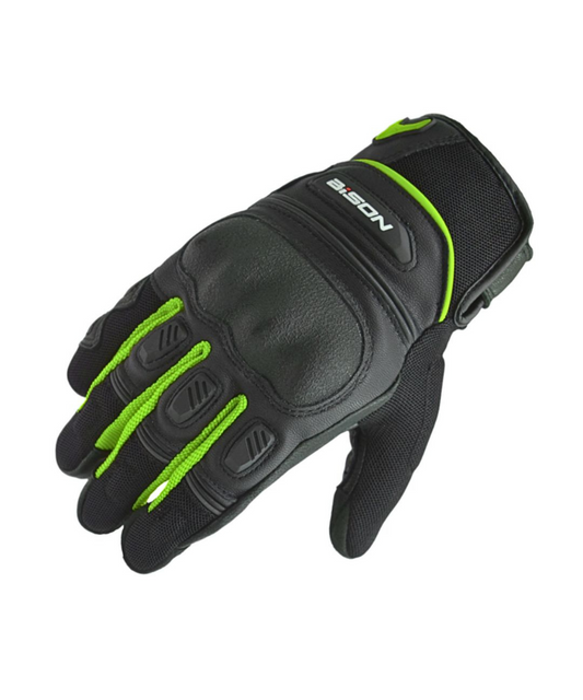 Bison ProGear Air Pro Riding Gloves - Black Hi-Viz Green