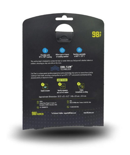 - The 98Fahren evaporative cooling technology is a highly absorbent Polyvinyl Alcohol Fabric. Body Cooling Towel is created from this fiber and activated by soaking them in water for one minute.