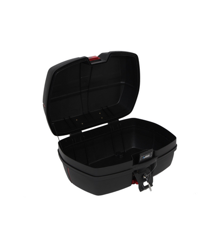 - Strong and compact storage box made from PP plastic. Easy to mount with metal base plate. Needs a rack (not included). Quick-release system with push button. No light. Ideal for daily rides.