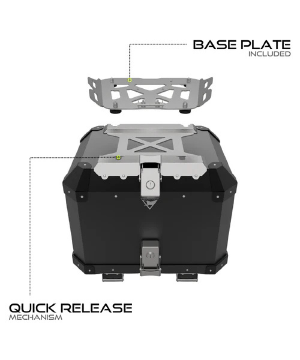 - Top case is mechanised with quick release feature allows easy removal and attachment of box.