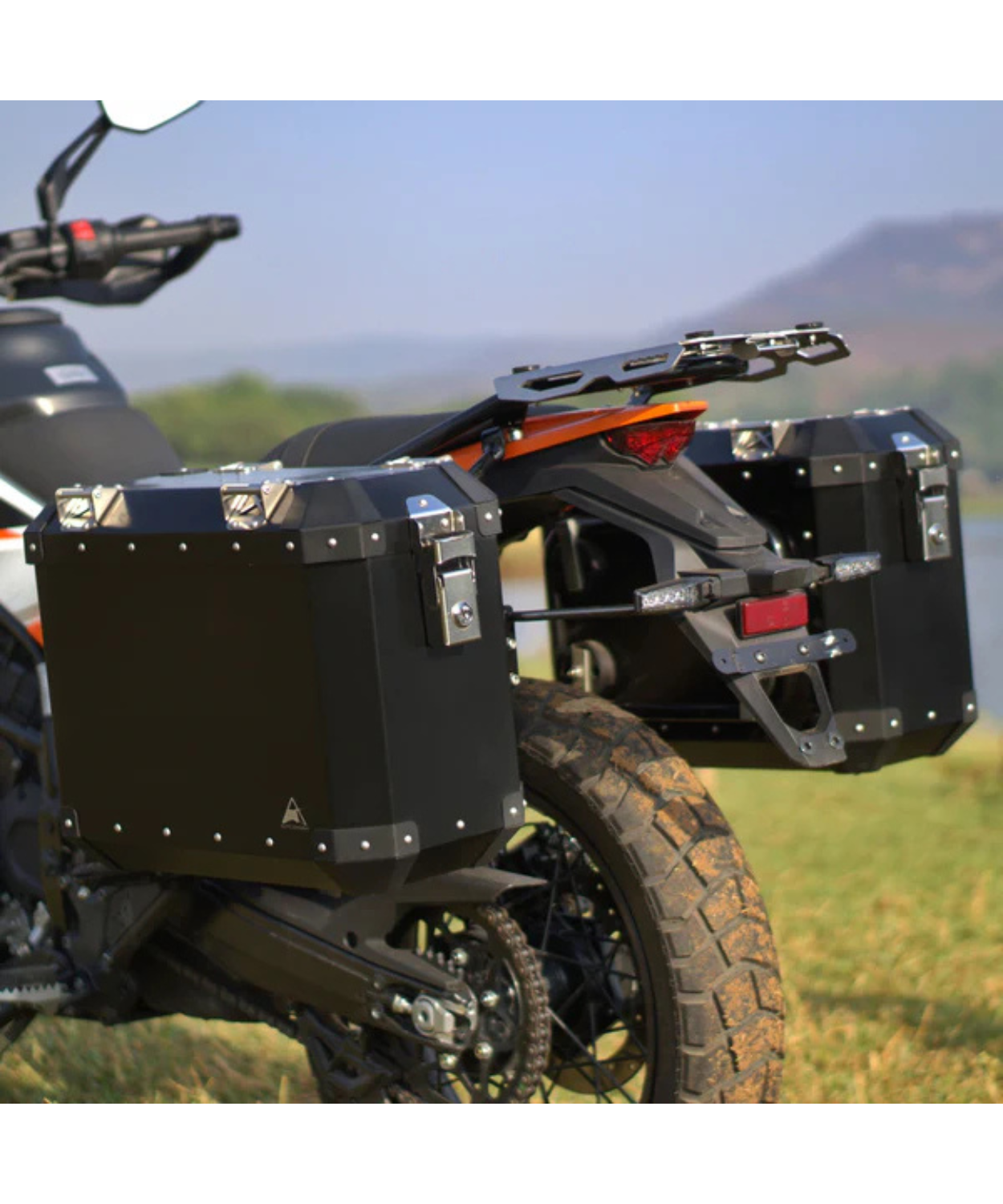Side case elements are designed on basis of industrial theme which makes panniers look rugged. Side cases are coated with PPE powder coats for better outdoor life.