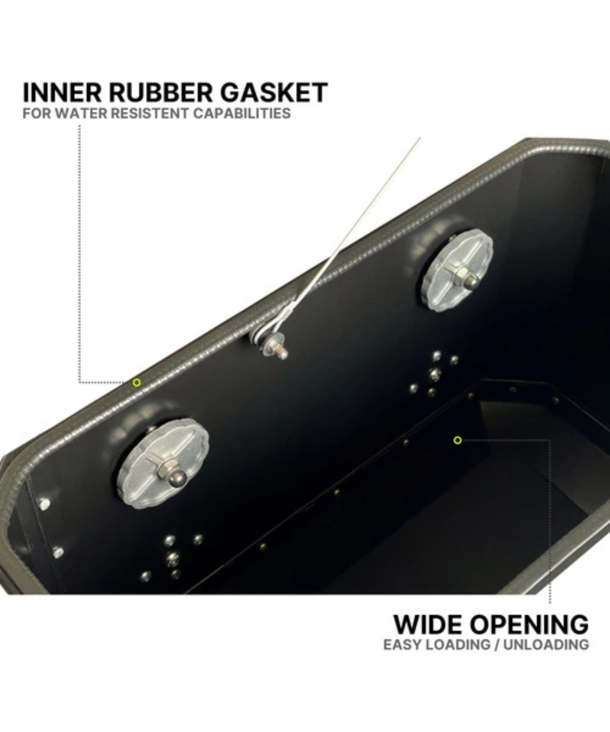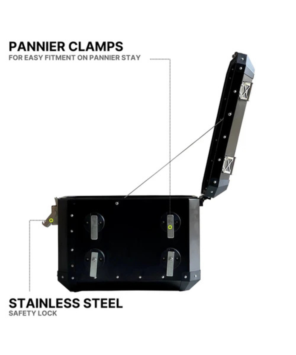 - The 1.5mm aluminium sheet body is assembled with heavy-duty industrial riveting, providing the essential rigidity to withstand heavy bumps, while also keeping the side cases lightweight.