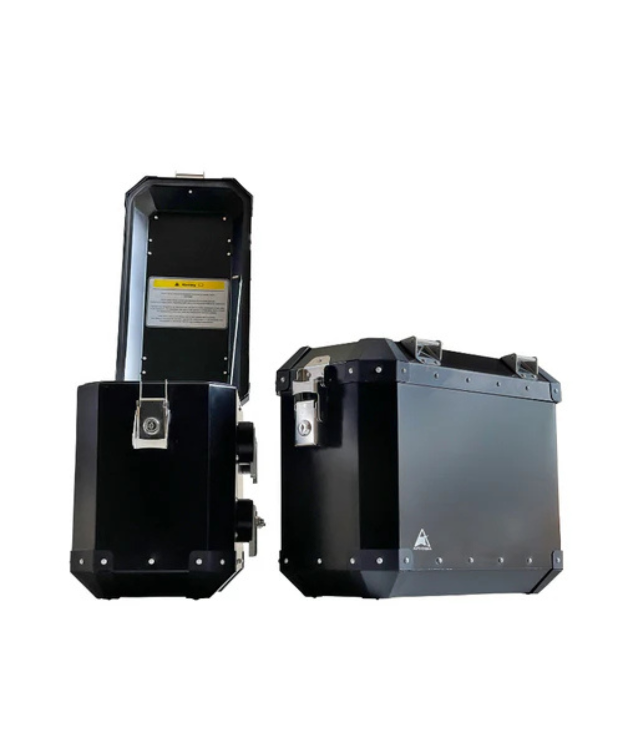 - The 1.5mm aluminium sheet body is assembled with heavy-duty industrial riveting, providing the essential rigidity to withstand heavy bumps, while also keeping the side cases lightweight.