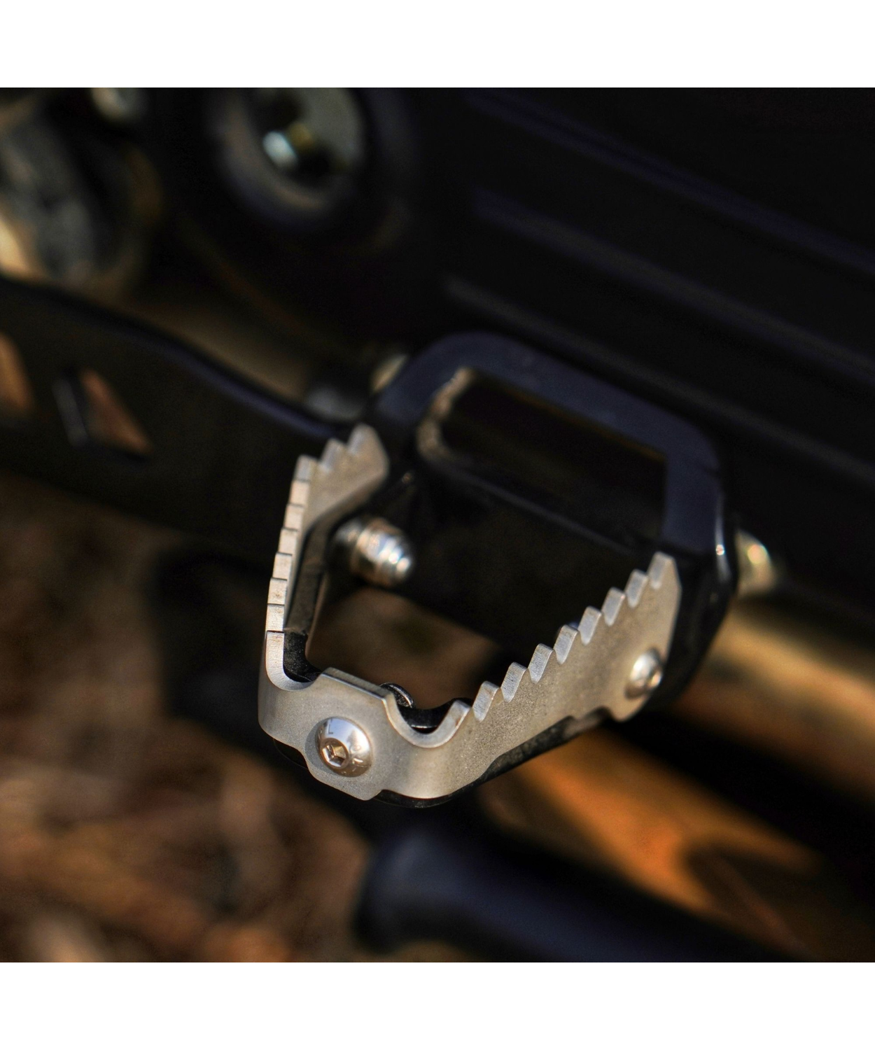 Aesthetics and Ergonomics: The redesigned brake pedal is as functional as it is stylish. Its ergonomic design features a flat-foot resting area that provides extra comfort during long rides, allowing the rider to rest their foot while touring. The responsive feel of the pedal ensures precise braking, while the well-thought-out proportions and textured grip improve control and confidence on every ride. This combination of comfort, control, and aesthetics makes it an essential upgrade for adventure and touring enthusiasts.
