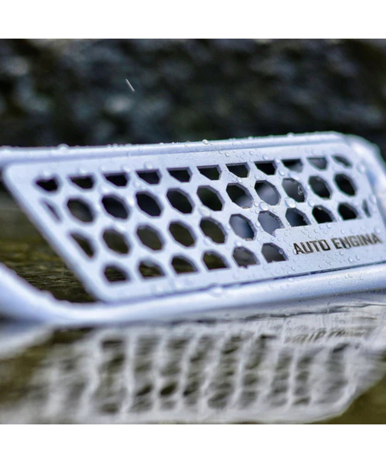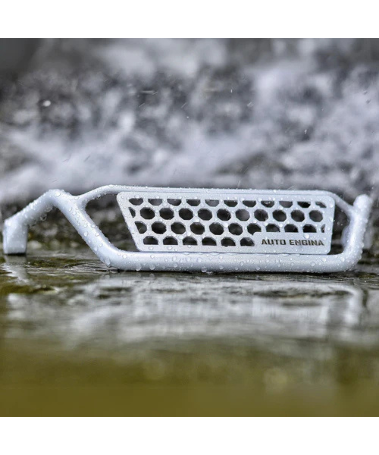 - Crafted from a solid 12mm mild steel (MS) bar with a honeycomb-shaped laser-cut MS sheet, this headlight grill offers maximum protection without compromising visibility.