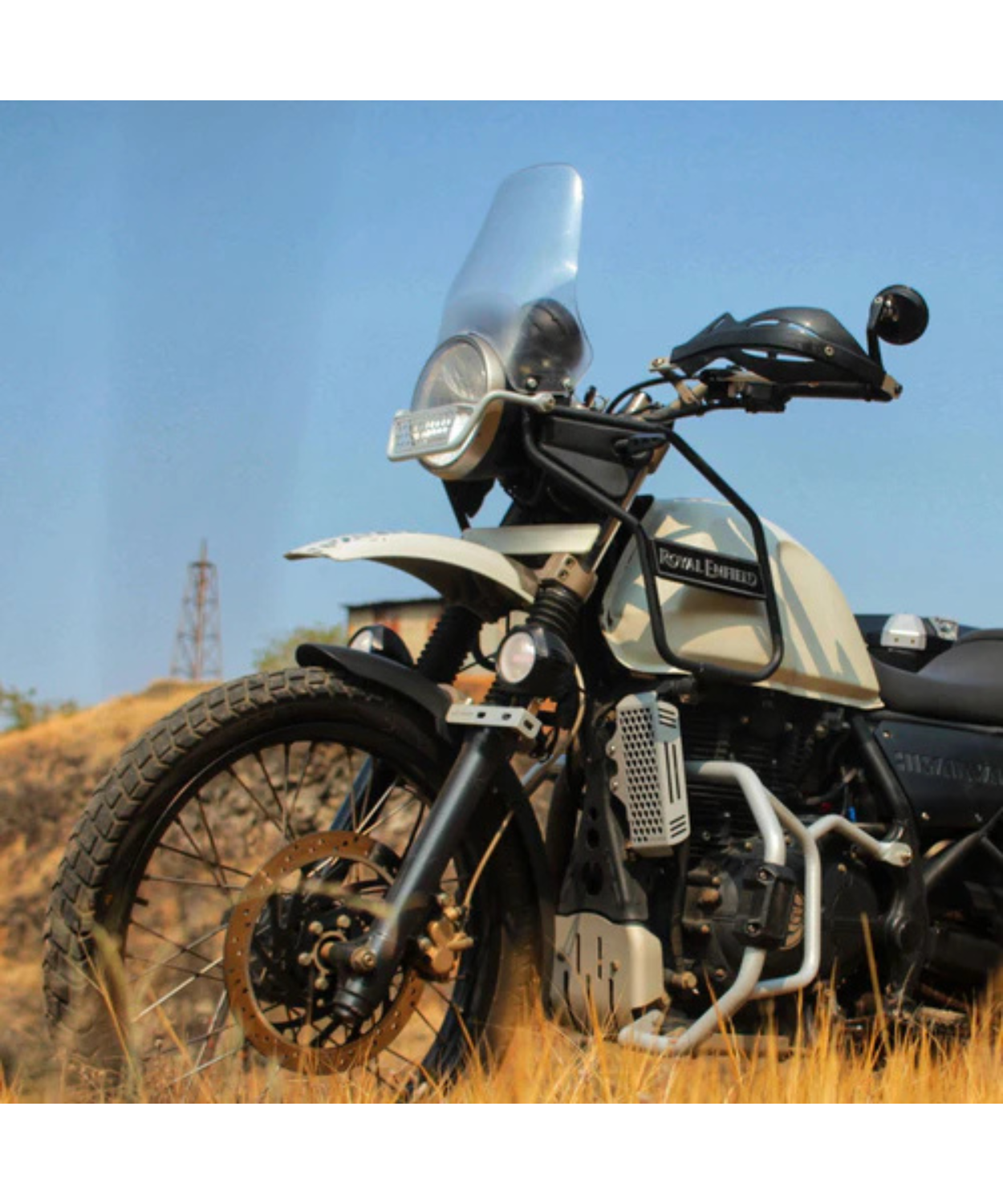 - Upgrade your Royal Enfield Himalayan 411 with our rugged Headlight Grill, designed to shield your headlight from flying stones while adding a tough, adventure-ready look.