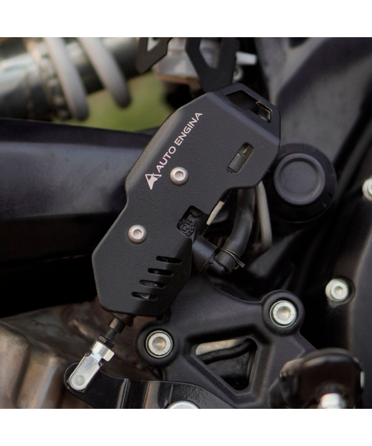 - Enhance the protection of your Royal Enfield Guerrilla 450 with Auto Engina’s Master Cylinder Guard. Designed to shield your master cylinder from debris and boot contact, this guard ensures durability while complementing your bike’s rugged aesthetic.
