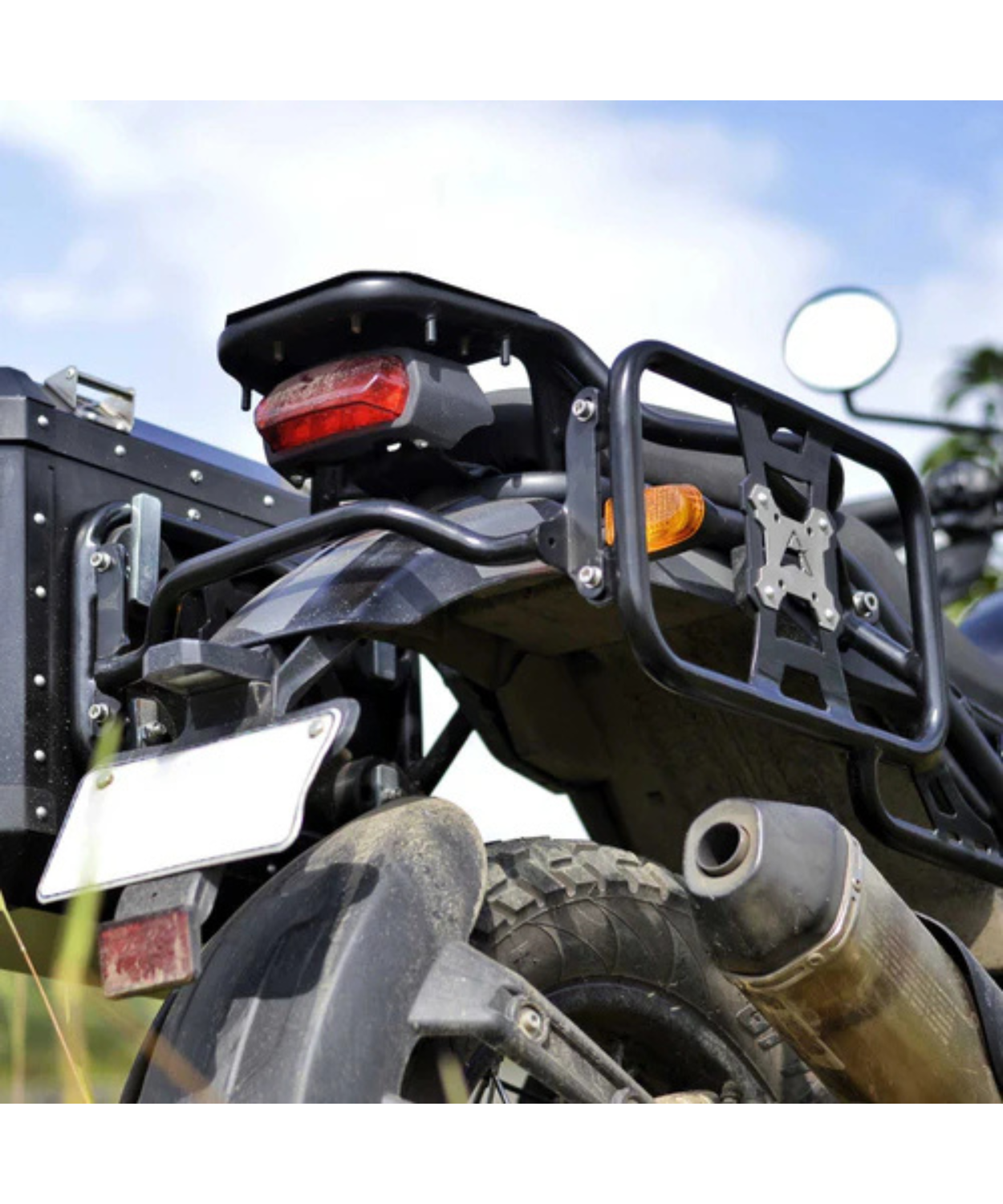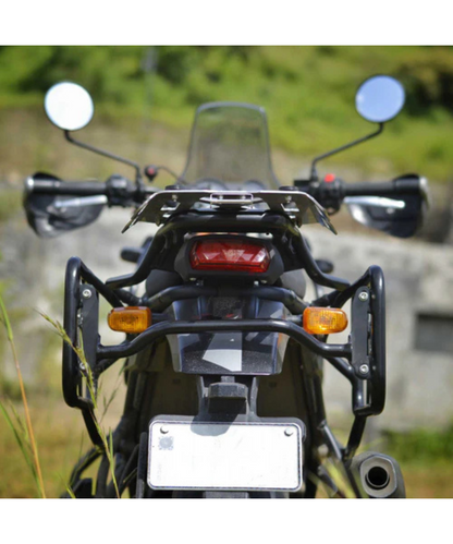 Designed specifically for the Royal Enfield Himalayan 411, this saddle stay offers secure mounting points for soft luggage and panniers. The frame features strategically placed mounting points, optimised to maintain the bike's balance while carrying extra weight. The laser-cut brace also doubles as a supportive structure, ensuring stability and preventing lateral movement during rides.