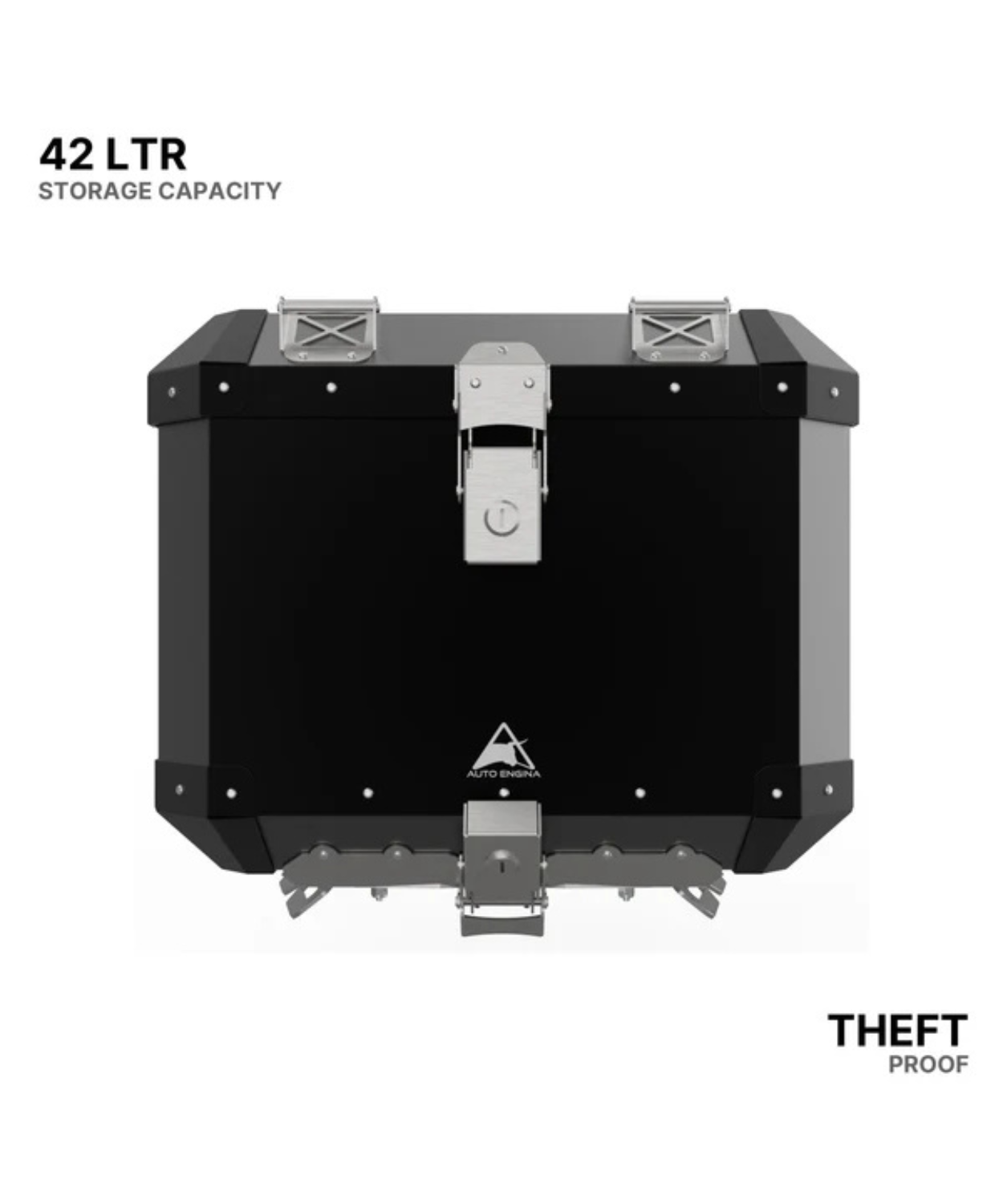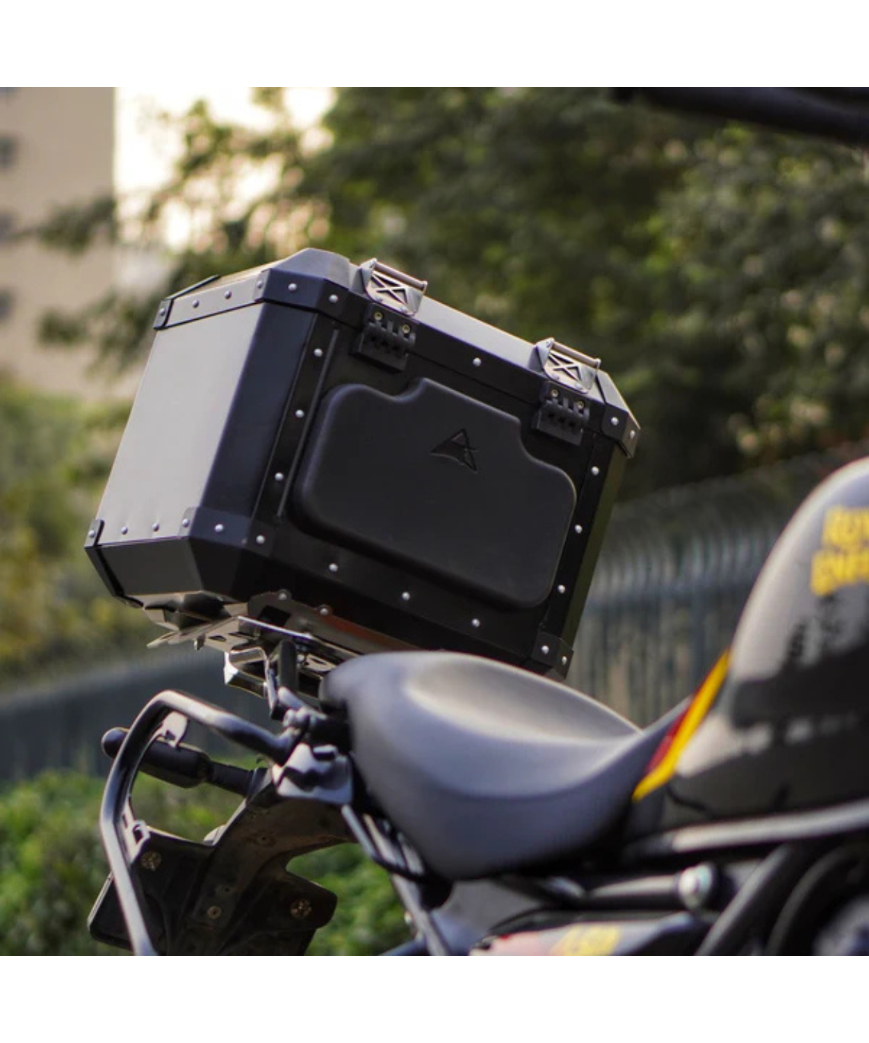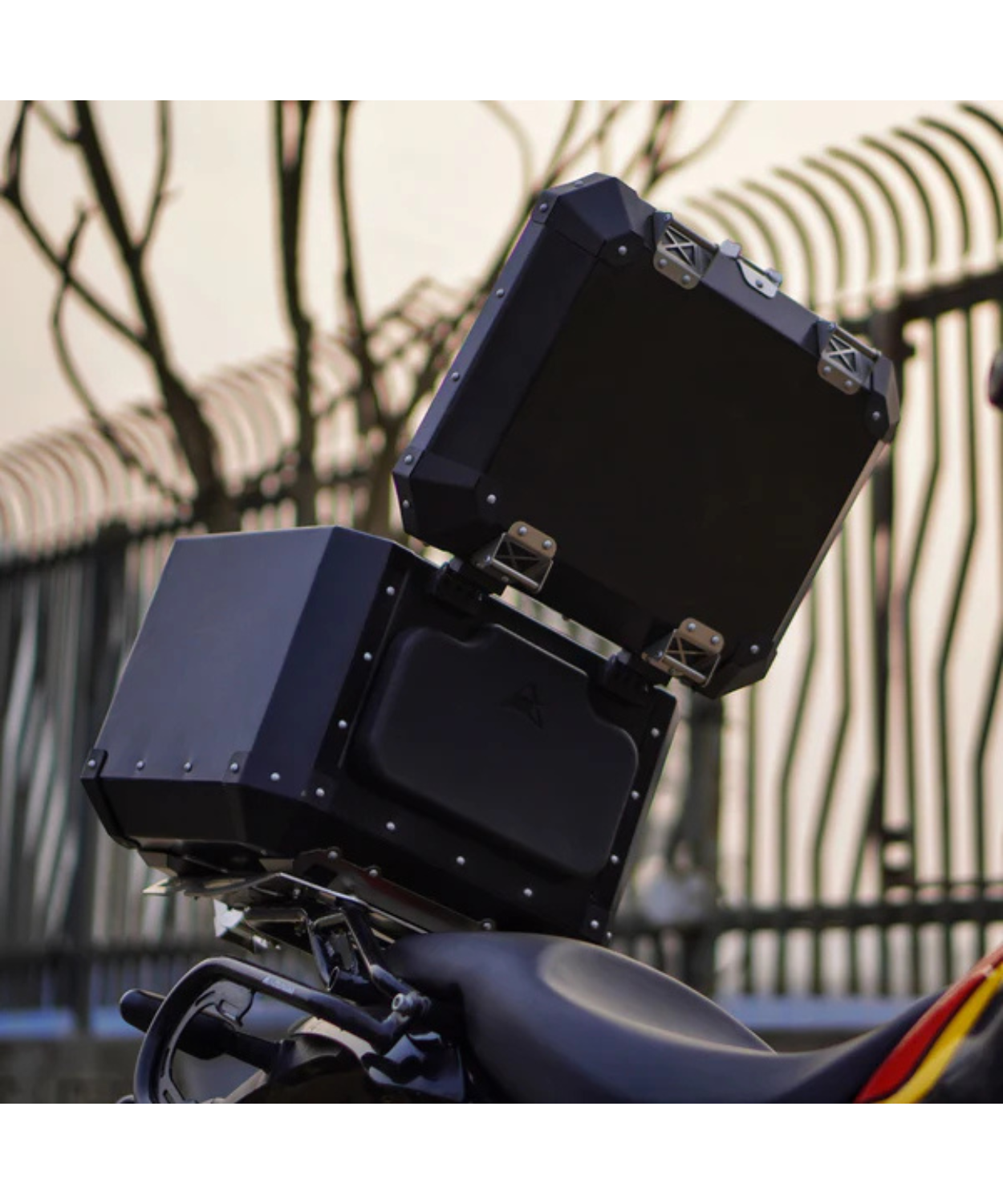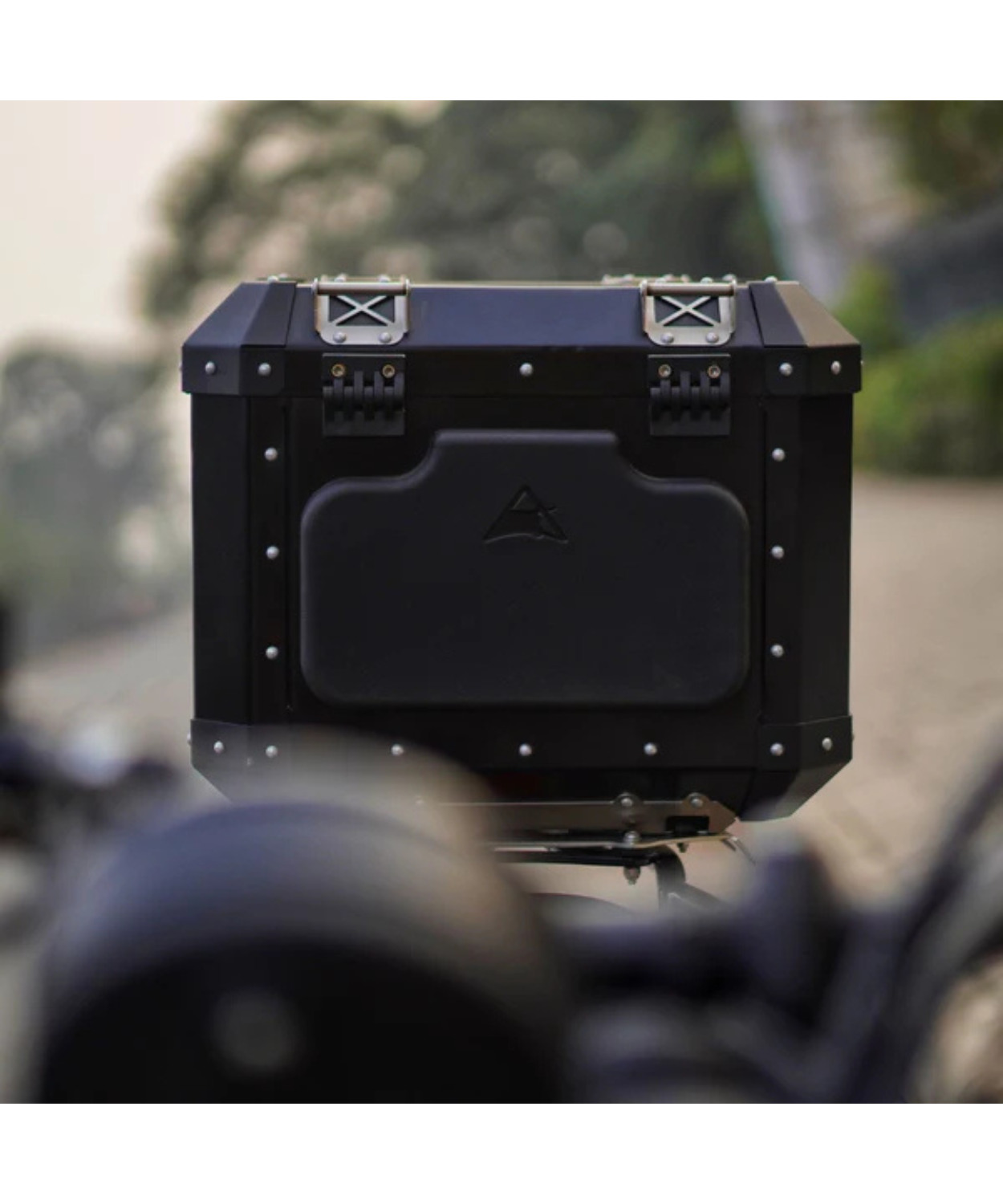 Construction: The Adventure Series top boxes are specifically designed to withstand rough terrain and are made of durable materials. The body of the top box is made of 1.5mm aluminium sheet and heavy duty industrial riveting for additional strength. All attachments and lock bodies are made of SS304, making the top box capable of handling any rough use.