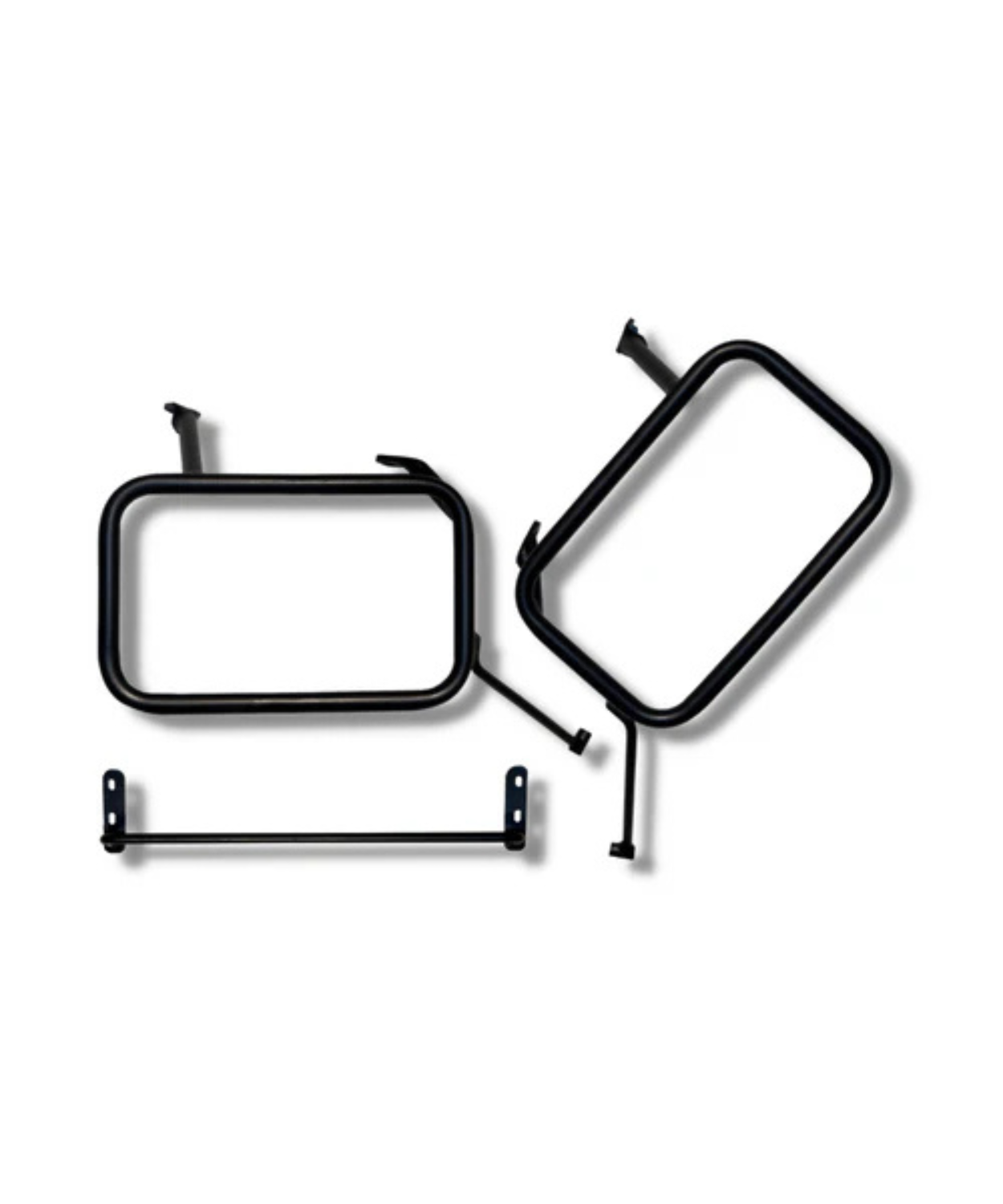 - Built with 22mm mild steel tubes and 6mm laser-cut brackets, the pannier rack features a sturdy, three-point mounting system.