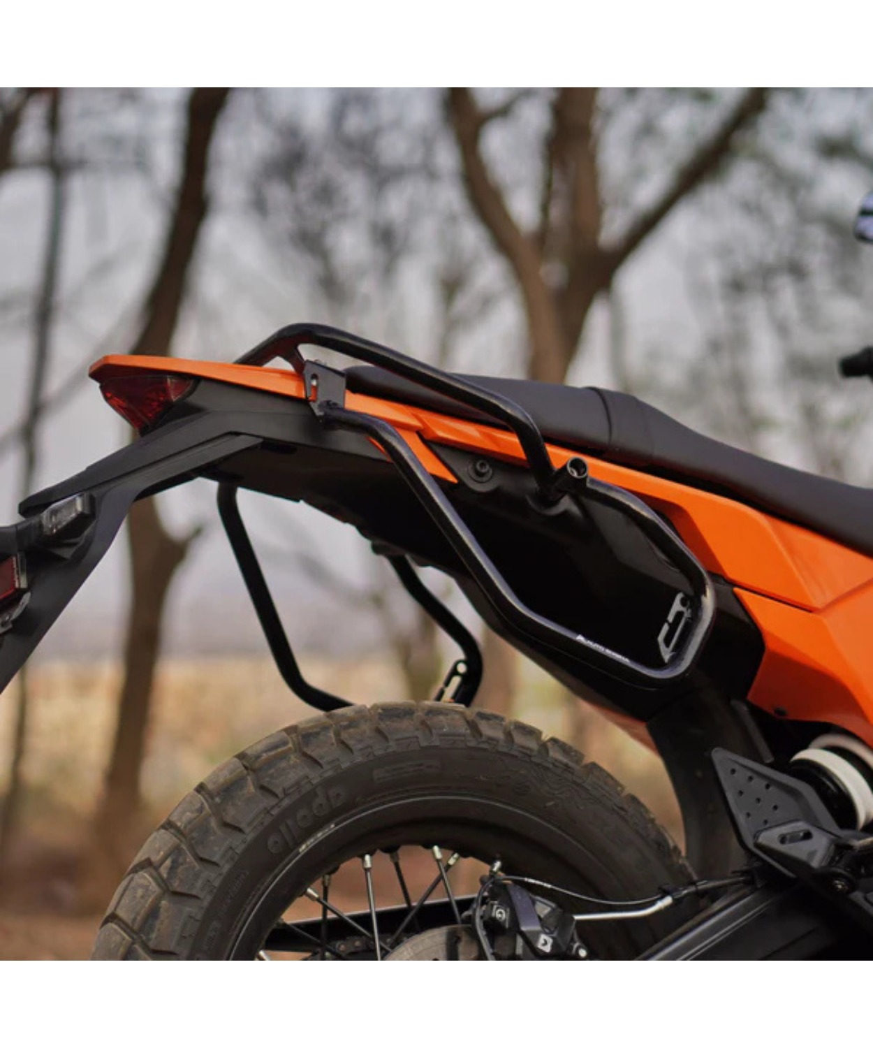Aesthetics: The slope-down square shape gives more adventure appeal to the KTM 390 Adventure and complements its sharper tail section. Finished in high-quality gloss powder coating, the saddle stay not only offers excellent corrosion resistance but also delivers a premium, refined appearance that matches the KTM’s adventure spirit.