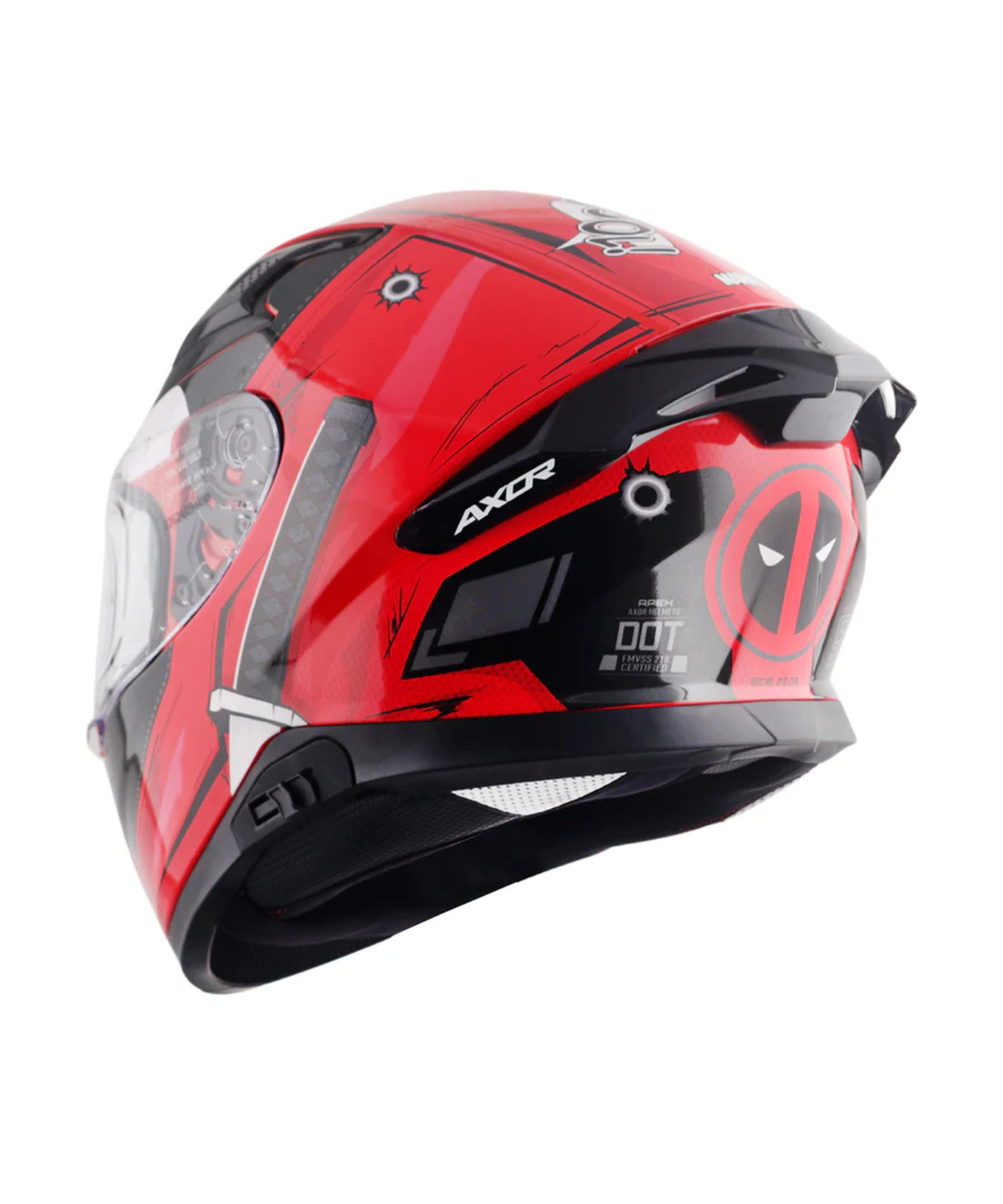 - The AXOR Apex Helmet with Deadpool graphic is a premium, full-face helmet designed for Marvel enthusiasts and motorcycle riders.