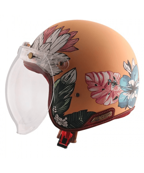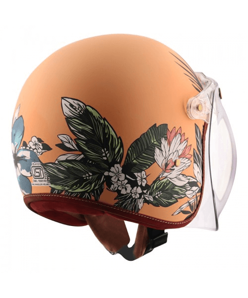 - An Open Face Jet Helmet with bubble visor, which favors the option of using cool summer glasses.