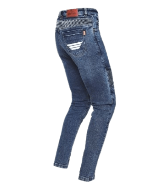 Steam Pro Lady is designed and tailored exclusively for the women riders. Made of 12 Oz denim (97% organic cotton and 3% Lycra) Lined with 100% genuine DuPont Kevlar® on the insides provides shielding in case of abrasion.