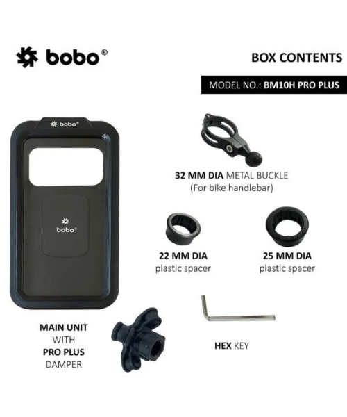 BOBO BM10H PRO PLUS Fully Waterproof Bike Cycle Phone Holder with PRO PLUS Vibration Damper Motorcycle Mobile Mount - Black