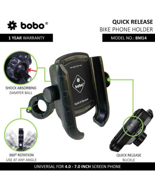 BOBO Quick Release Bike Cycle Phone Holder Motorcycle Mobile Mount - Black - BM14