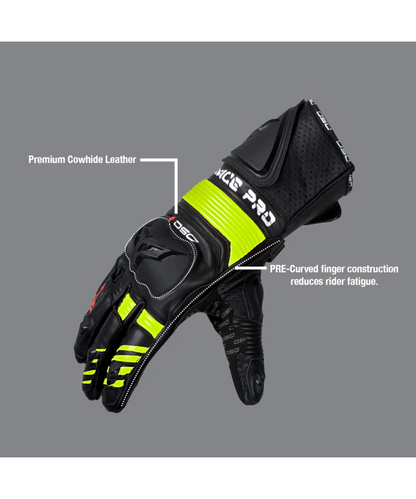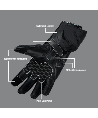 - Crafted from perforated leather, the RacePro Sport ensures optimal airflow, keeping hands cool and comfortable even under intense riding conditions.
