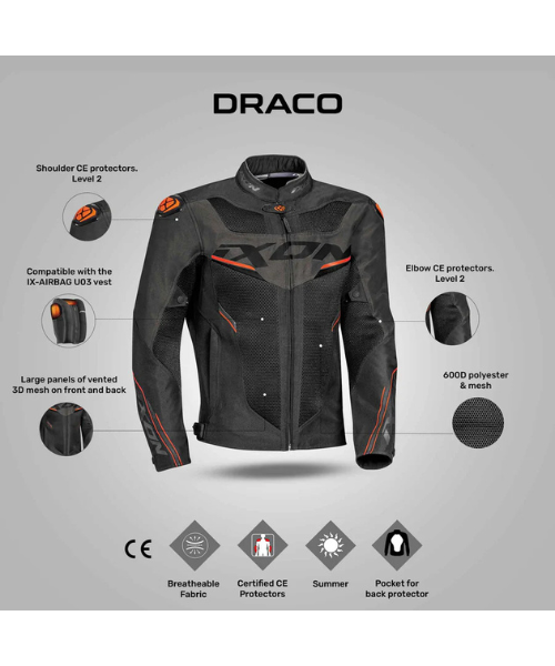 Ixon Draco Riding Jacket - Black Anthracite Orange