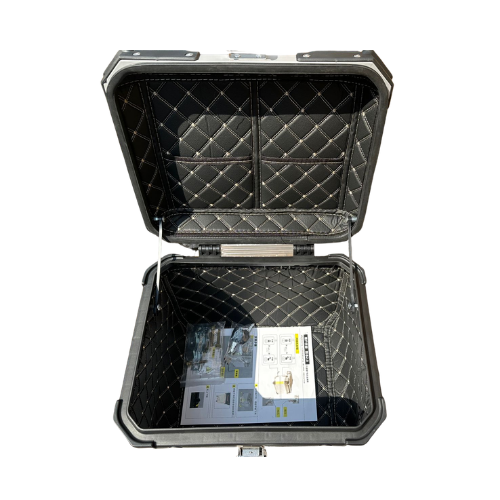 The Moto Arch Stainless Steel Top Box 45L (Black) is a robust and spacious motorcycle storage solution. Crafted from high-quality aluminum, it ensures superior durability, weather resistance, and a sleek, modern design to keep your belongings secure on every ride.