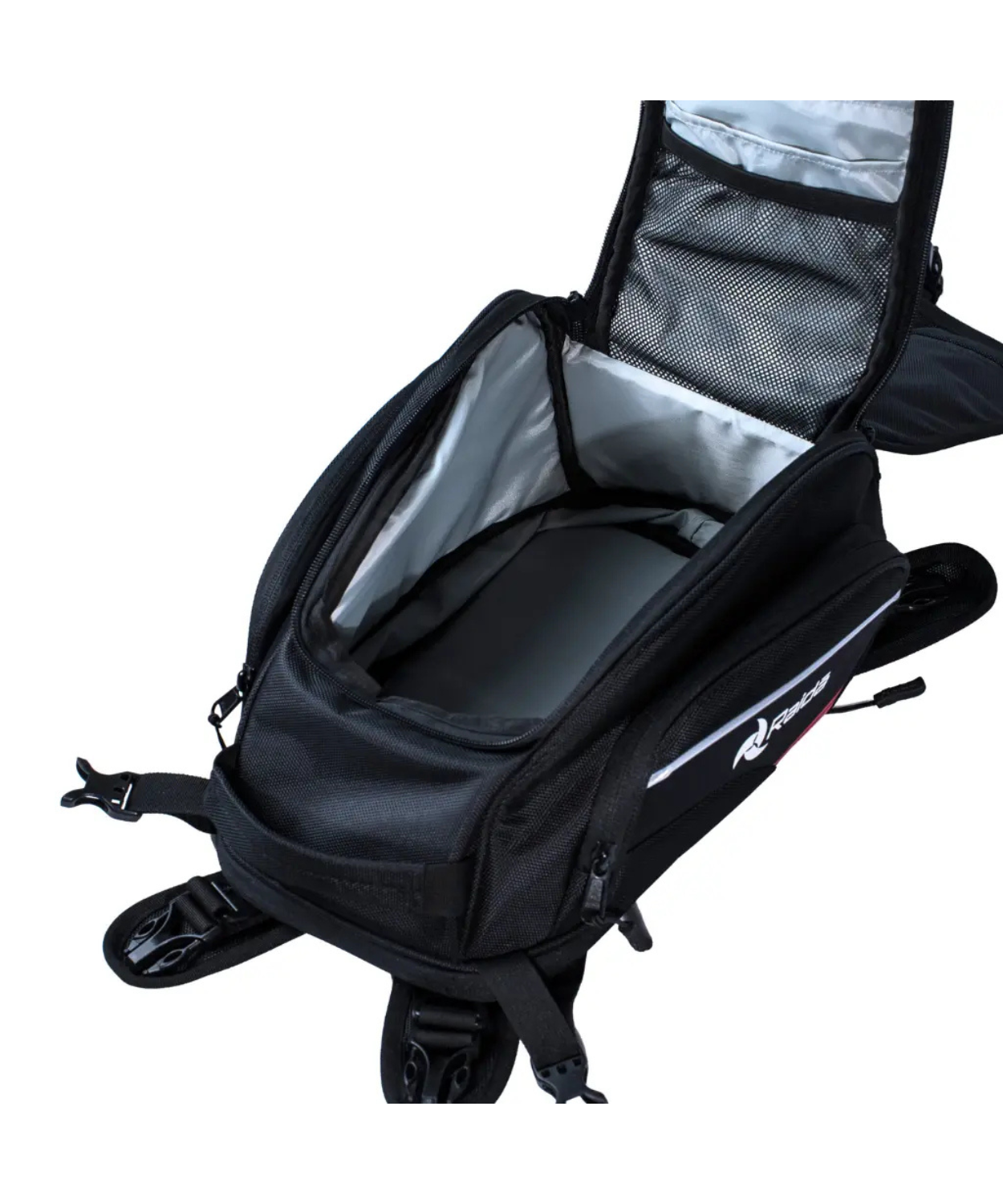 - Strong magnets and versatile straps provide a stable fit on all fuel tanks, and the bag can be converted into a backpack for maximum flexibility on every ride.