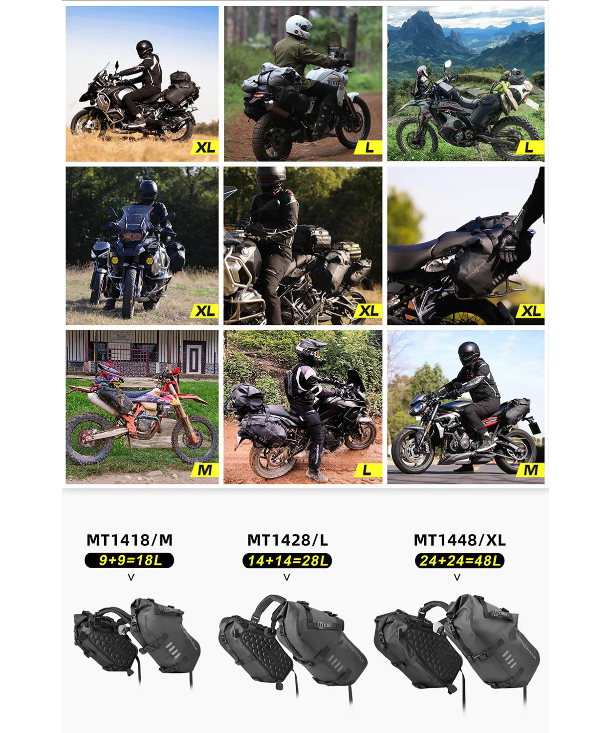 - You can adjust the distance between the two waterproof bike bags with the Velcro strap and buckle. Fits more motorcycles.