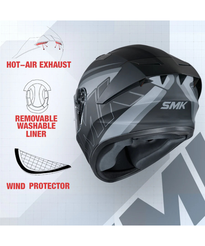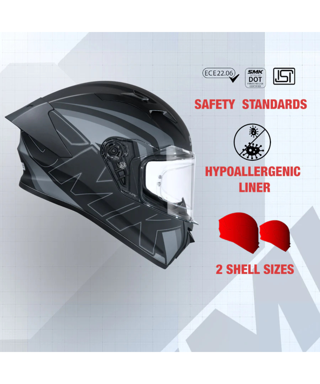 About SMK: SMK as a brand is one of the world?? largest manufacturers of protective helmets for motorcyclists arrives with its SMK range, a collection that is already complete, but one which will continue to grow in the coming years, with increasingly innovative and technologically advanced products that are safe and aesthetically captivating. SMK helmets are conceptualized and designed in Europe. From the molding of shells and components to painting and assembly, not forgetting the cutting-edge laboratories in which SMK helmets are tested in accordance with international homologations.