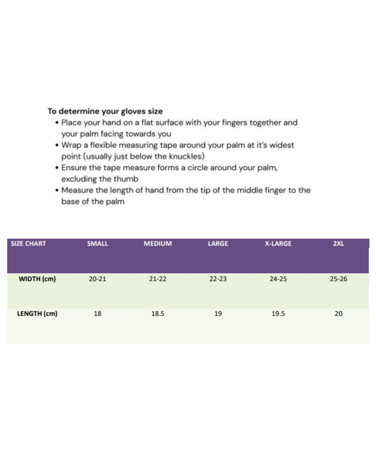 | SIZE | CHART | SMALL | MEDIUM | LARGE | X-LARGE | 2XL |