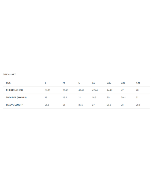 | SLEEVE LENGTH | 25.5 | 26 | 26.5 | 27 | 28.5 | 28 | 28.5 |
