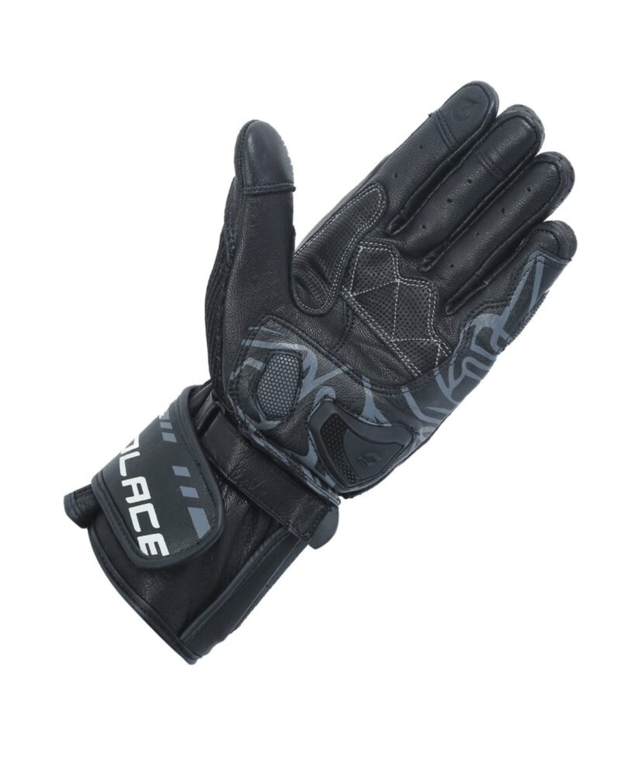 This combination allows the palm of the gloves to slide on the tarmac and prevent injuries to wrist bones due to hyper-extension.