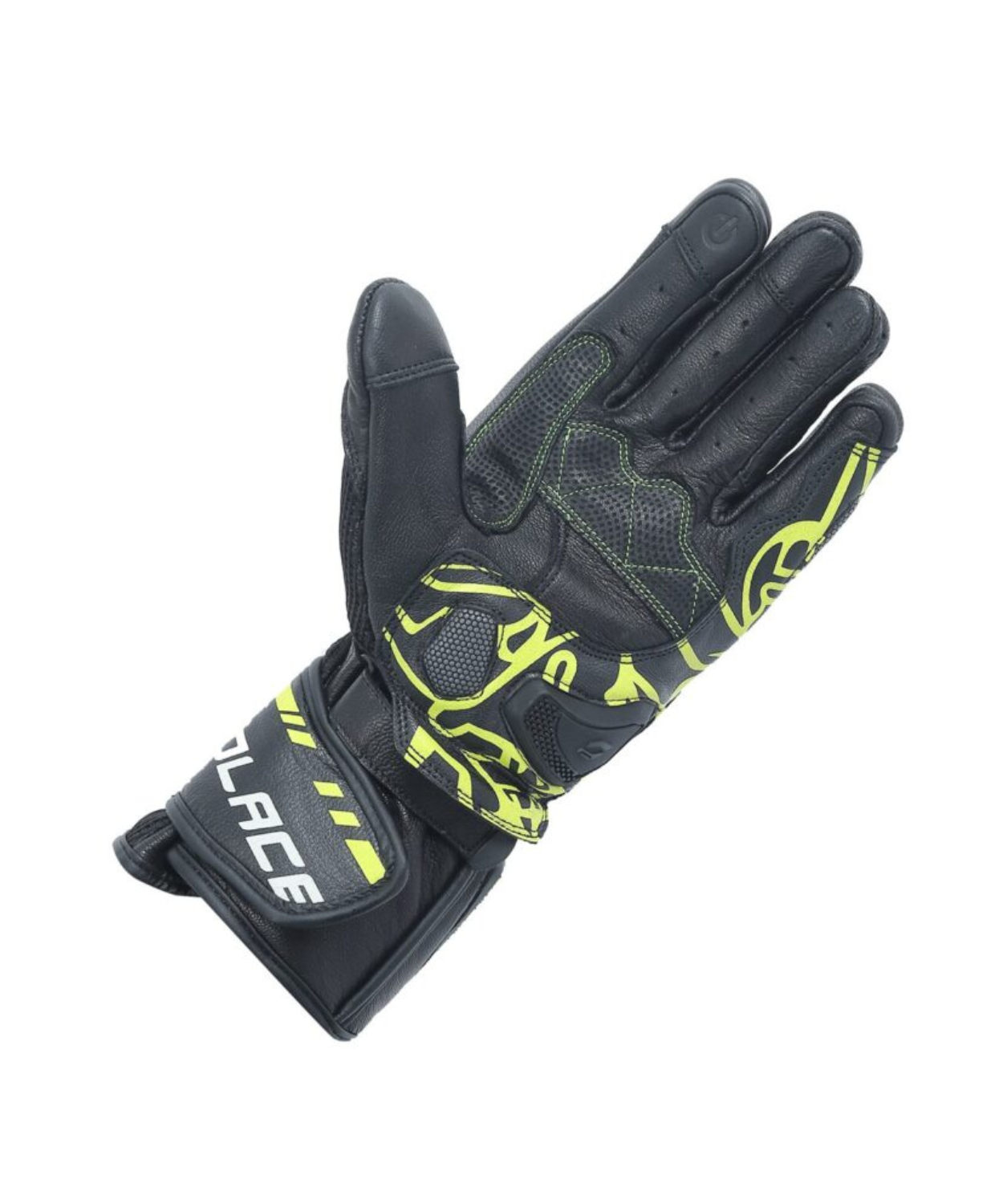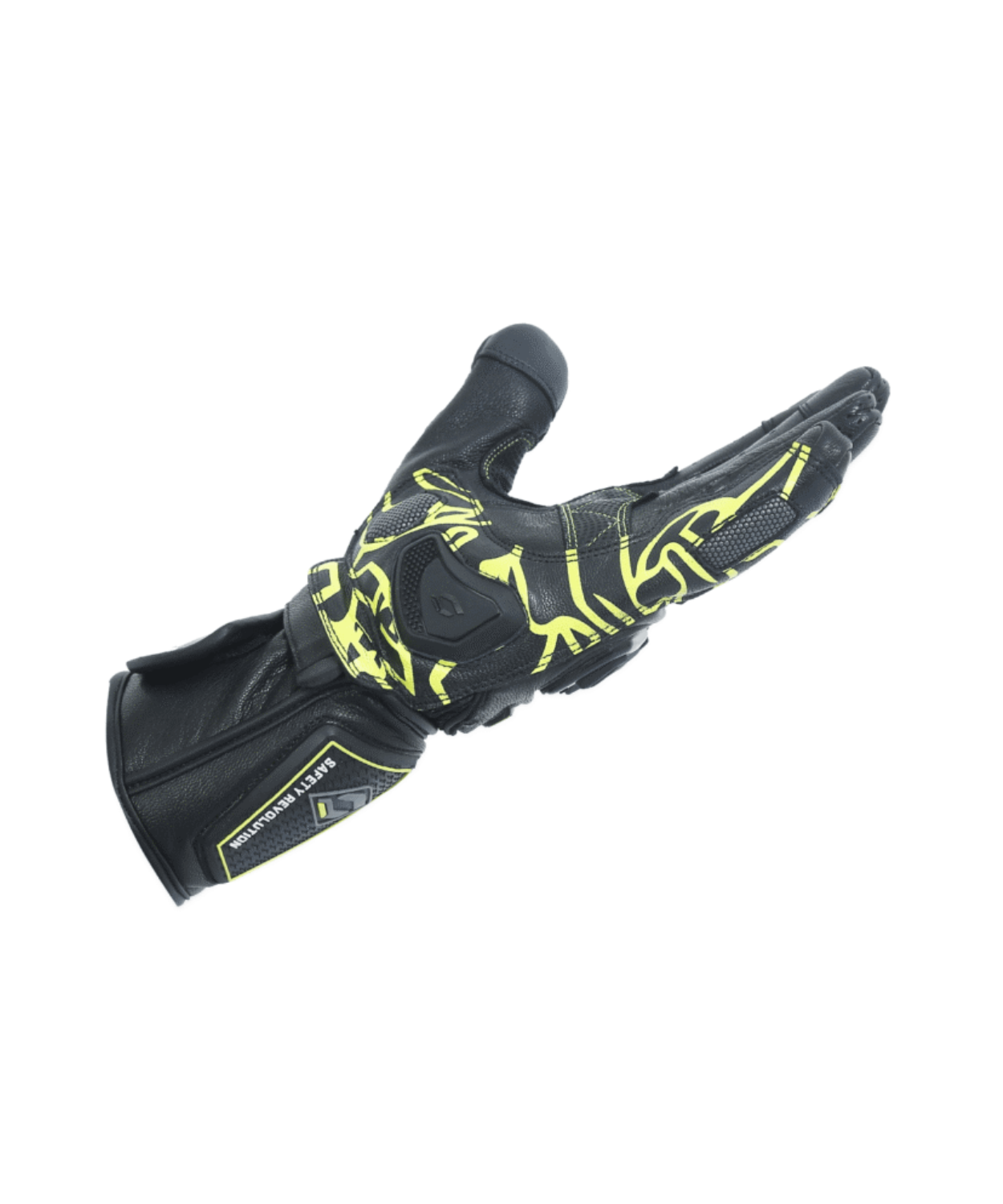 This combination allows the palm of the gloves to slide on the tarmac and prevent injuries to wrist bones due to hyper-extension.