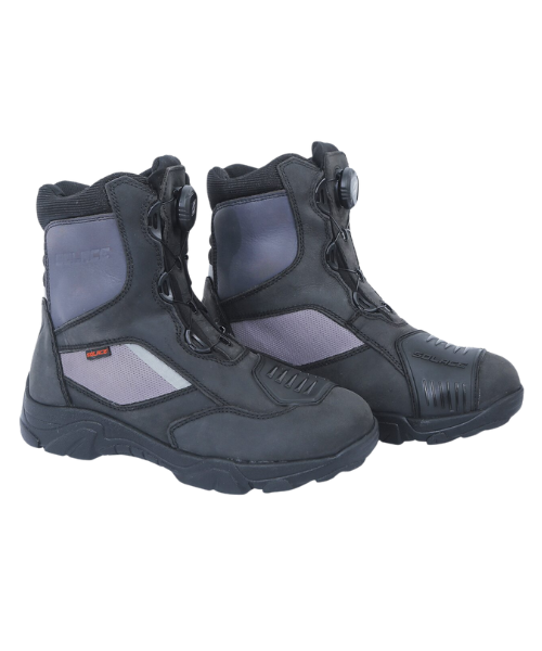 Size Chart: Product Description: Introducing the Sparknit (spär-nit) boots, your perfect partner for everyday riding. With the latest WindWire™ Rollkin dial system for quick and easy lacing. A pair of boots that are easy to use, protective, comfortable and proudly made in India. Features: Protection: Comfort and Ergonomics: Other Features: About Solace: Solace as a brand established in 2014 with the prime goal of making the best motorcycle equipment accessible to as many as possible. At Solace, they believe that two wheels are for more than mere commuting?The further we explore on two wheels, the better life gets. They believe that deep down most riders have wanderlust, a dream of going on an adventure of riding beyond the limits. So they set out to produce a product range that allows every rider to explore the world fearlessly. We truly believe that we provide the most varied selection of premium riding gear from the most renowned brands all in one place to make your buying experience enjoyable - and we back it up for a risk-free 30-day guarantee. If you don't have a Happy Experience, we will make it right for you so that you're 100% satisfied. Buying items online can be a daunting task, so we want you to know that there's absolutely ZERO RISK buying something you like and trying it out. If you don't like it, write to us and we'll make it right. We are Happy when YOU are Happy! Be a Part of the Bikester Family Today