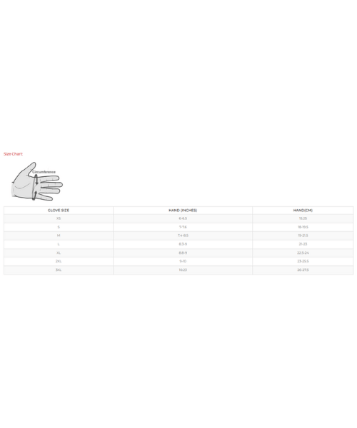 | Glove Size | Hand (Inches) | Hand(Cm) |