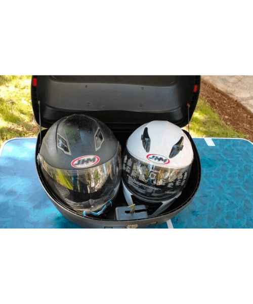 - A detachable motorcycle case with keys and a bolt-on base plate.