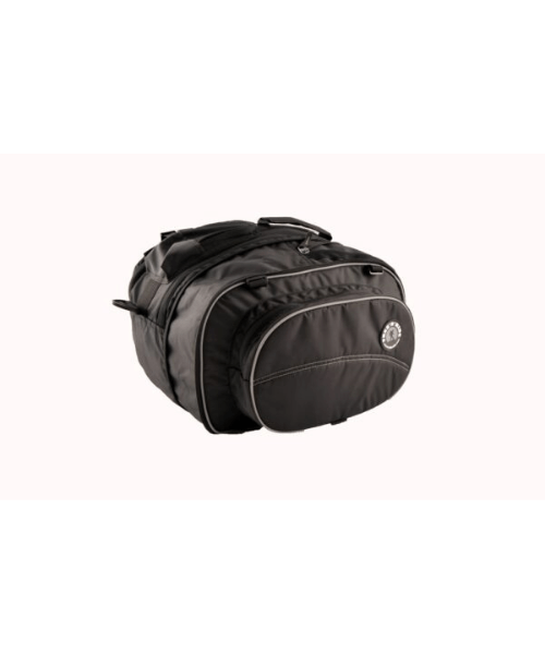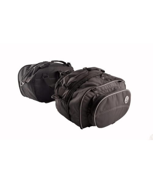 - Two bags on either side connected with Velcro panels on top and buckled straps under the pillion seat for added safety and grip.