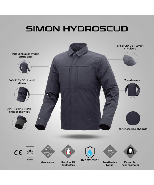 - HYDROSCUD® is the registered system that guarantees waterproofing and breathability. 100% waterproofing against rain is guaranteed either by an inner membrane or the use of coated fabrics together with water run-off flap and taped seams. Breathability is ensured thanks to the membrane and the aeration systems positioned on the back and under the armholes.