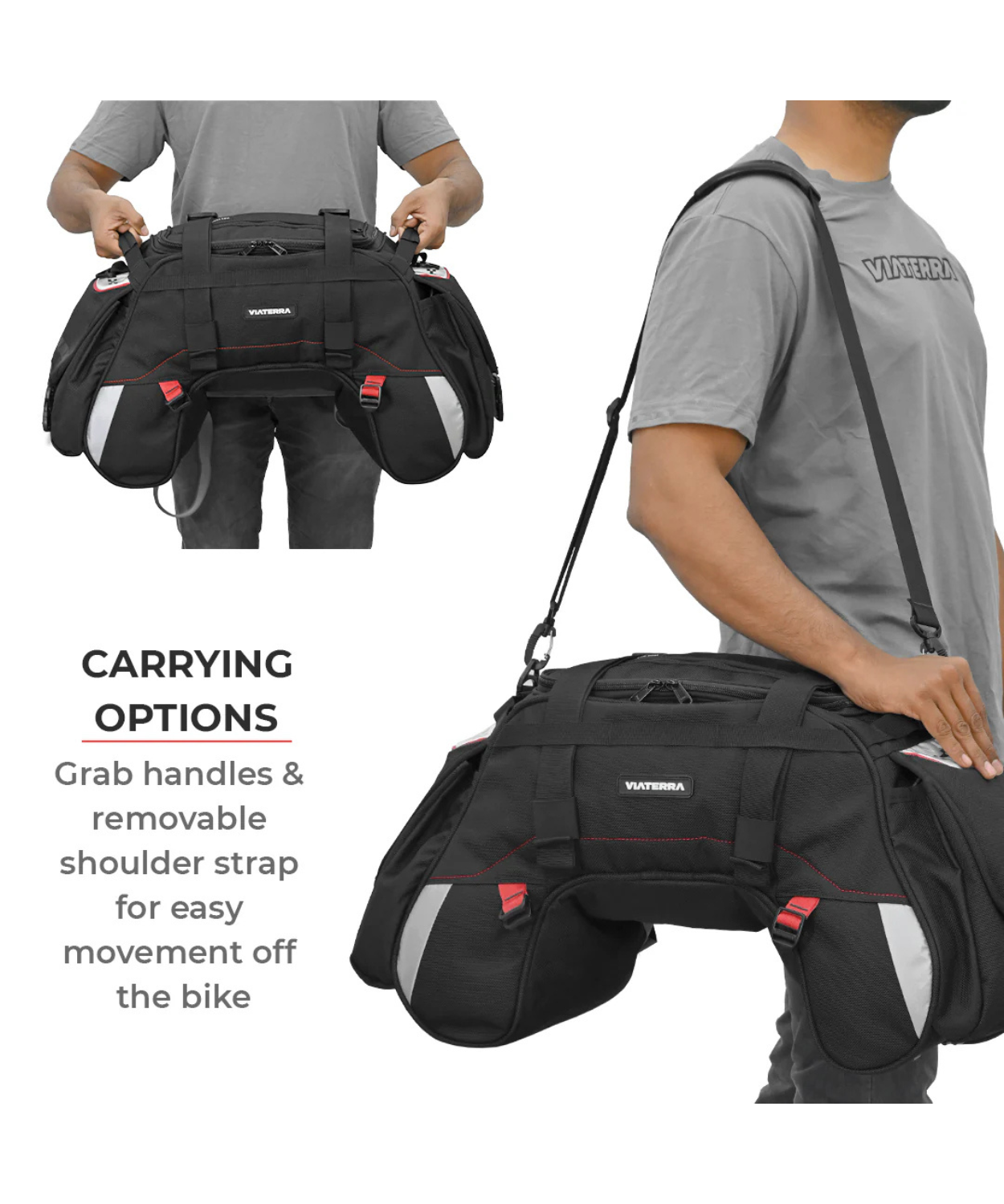 - 2 side grab handles for adjusting the bag during mounting or removing the bag easily when unmounting.