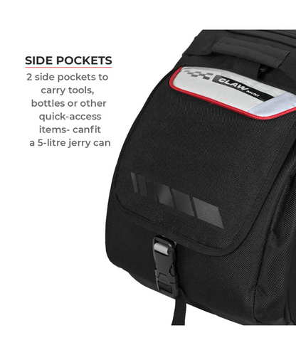 2 side pockets to carry fuel, tools, bottles, or other quick-access items – capacity is big enough to take a 5L jerry can.