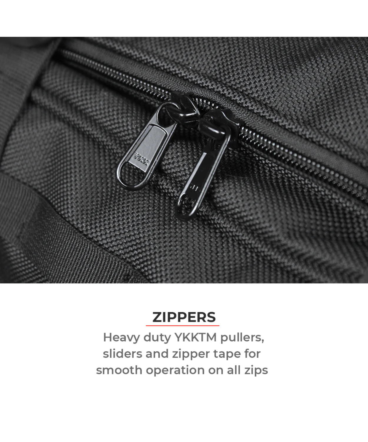 - Heavy duty YKK™ (the world's best!) is used across our range - pullers, sliders & tape - for extra durability and smooth operation on all zips. You can check the underside of the slider for the embossed “YKK” logo.