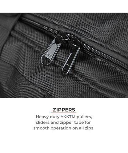 - Zippers & Pullers: Only genuine YKK™ sliders and zipper tape is used in all our products. You can check the underside of the slider for the embossed “YKK” logo.