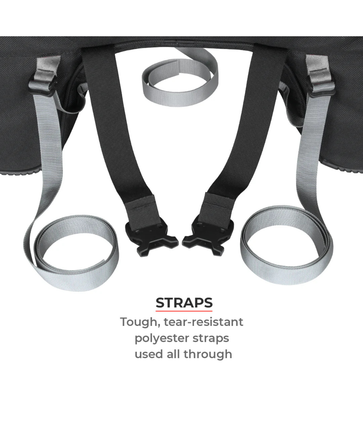 Webbing: Tough, tear-resistant polyester webbing used all through