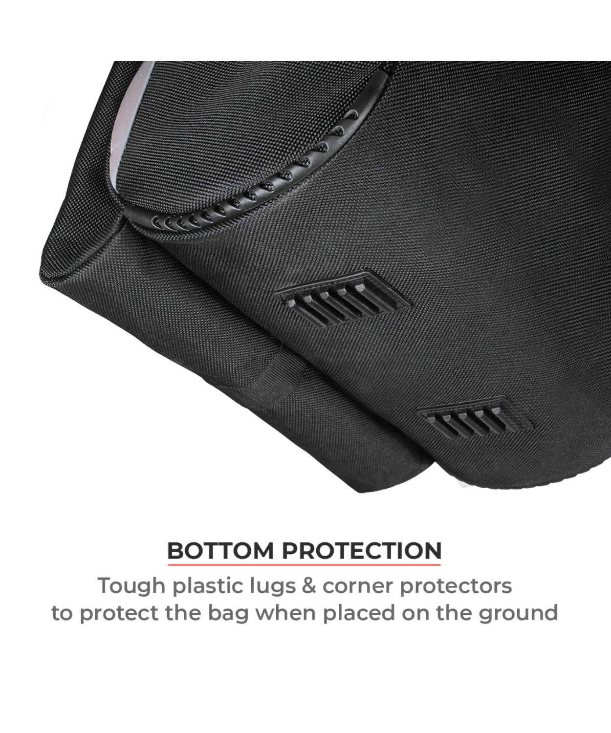 Abrasion protection: Bottom bumpers secured to the bottom to protect the bag fabric from abrasion when placed on the ground
