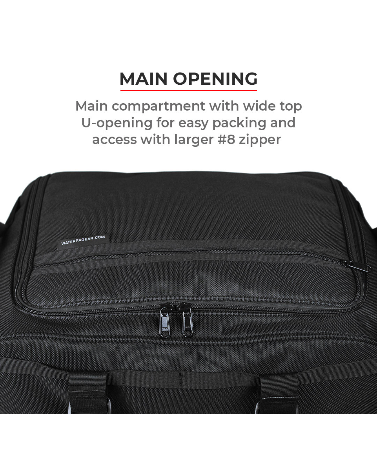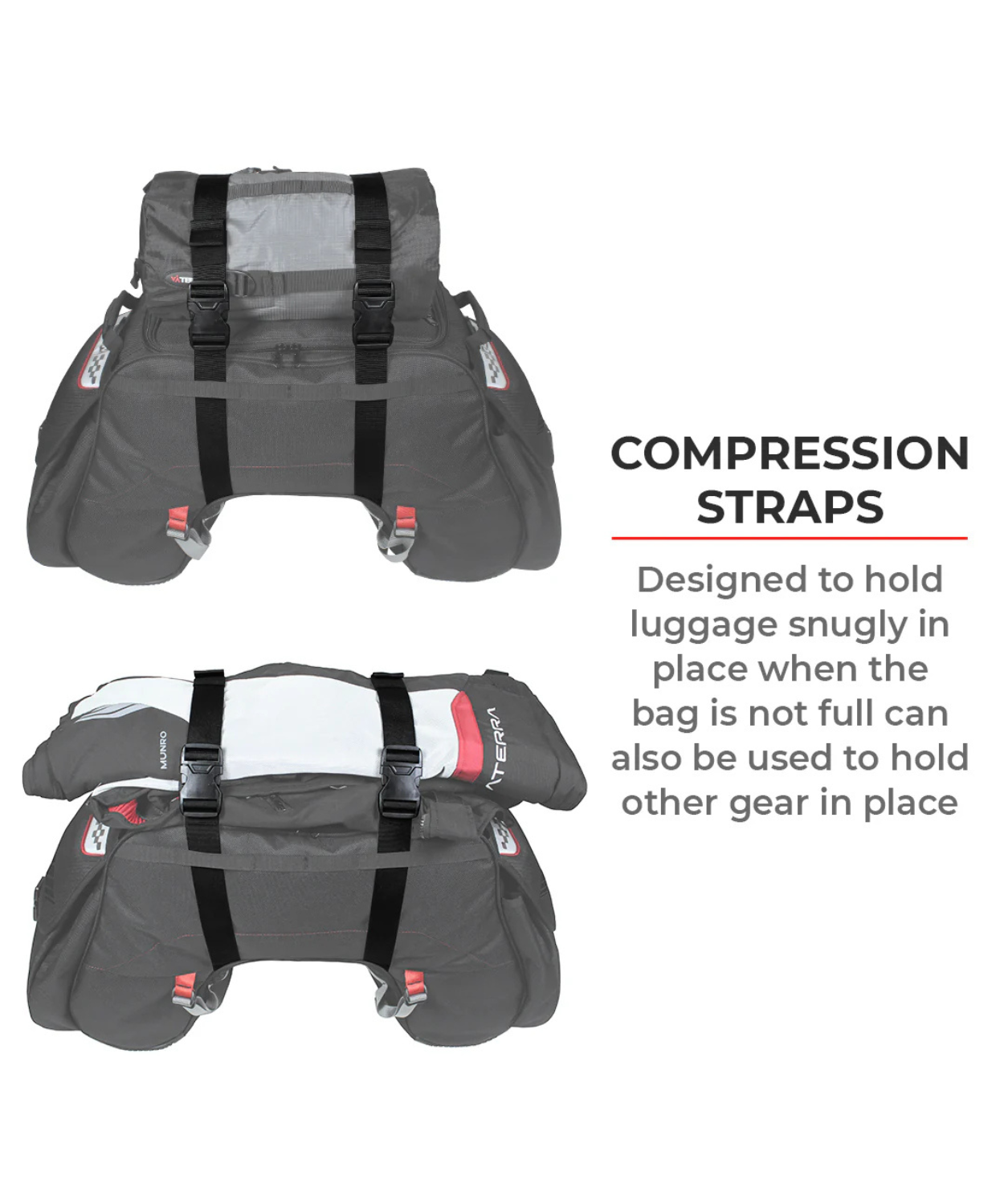 - 2 compression straps on top of the bag that lets you cinch down additional luggage if you wish to increase capacity with the POD 12L or POD 22L expanders.