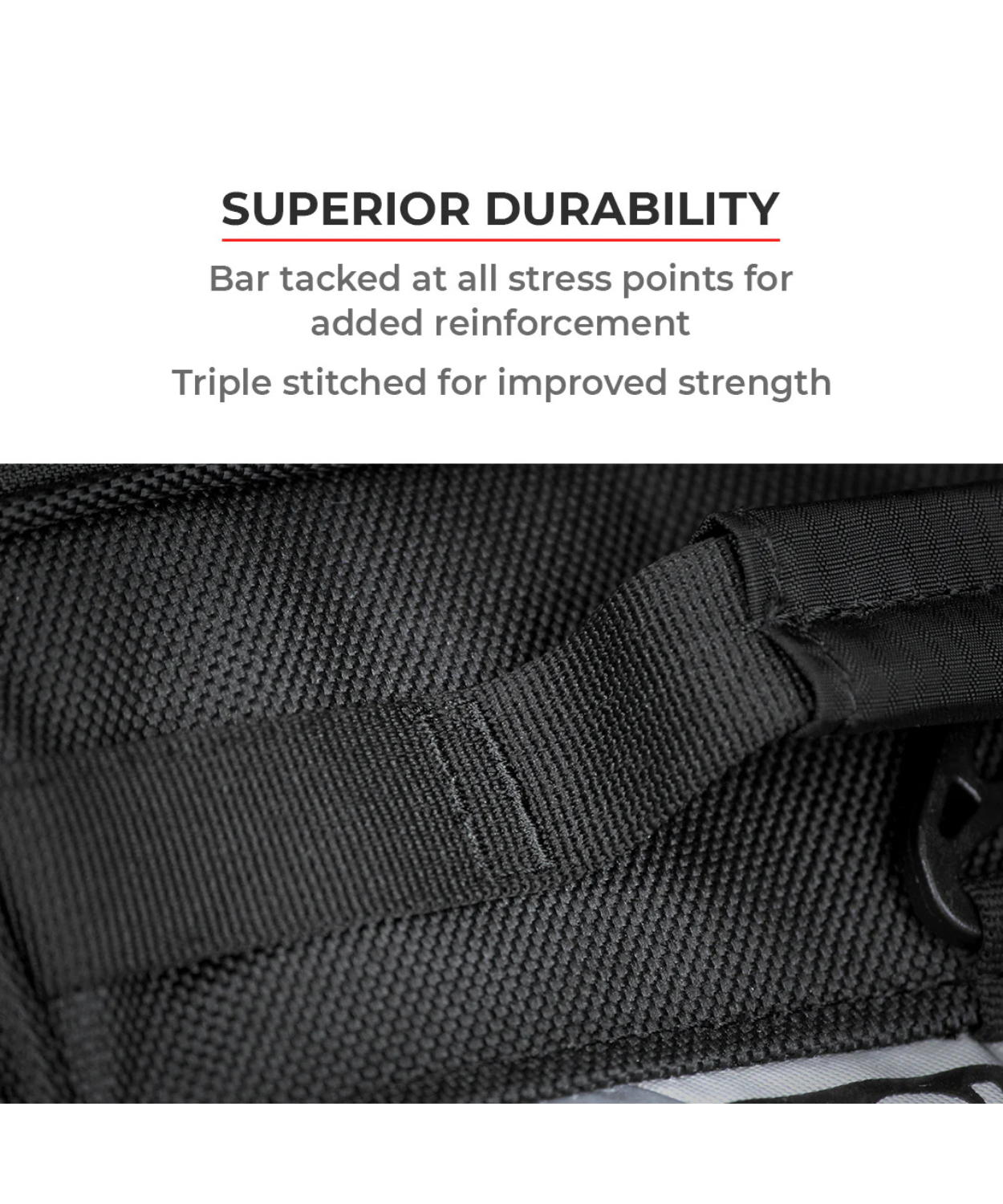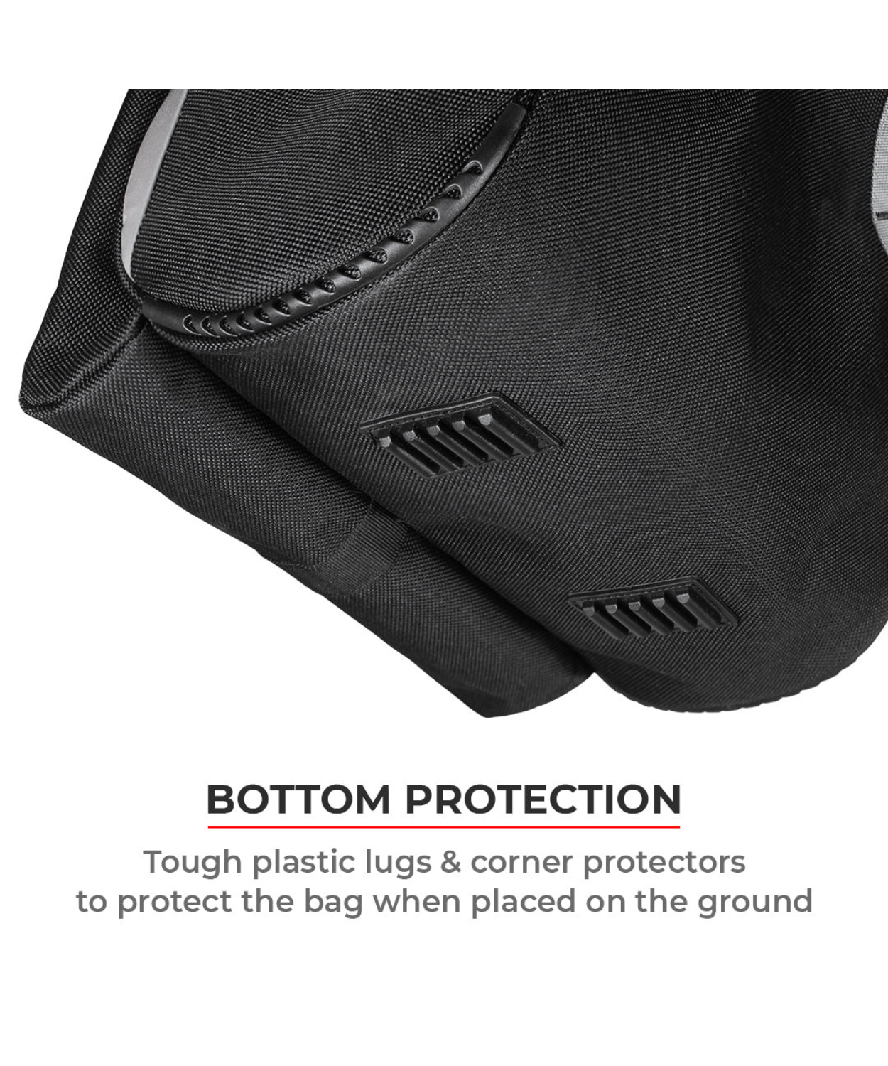 - Bottom bumpers secured to the bottom to protect the bag fabric from abrasion when placed on the ground
