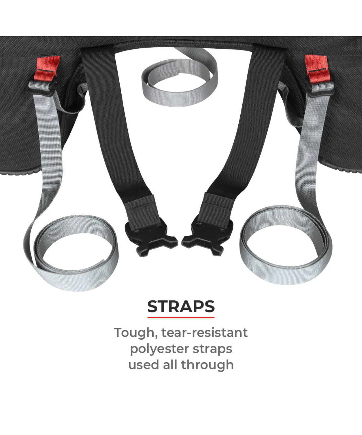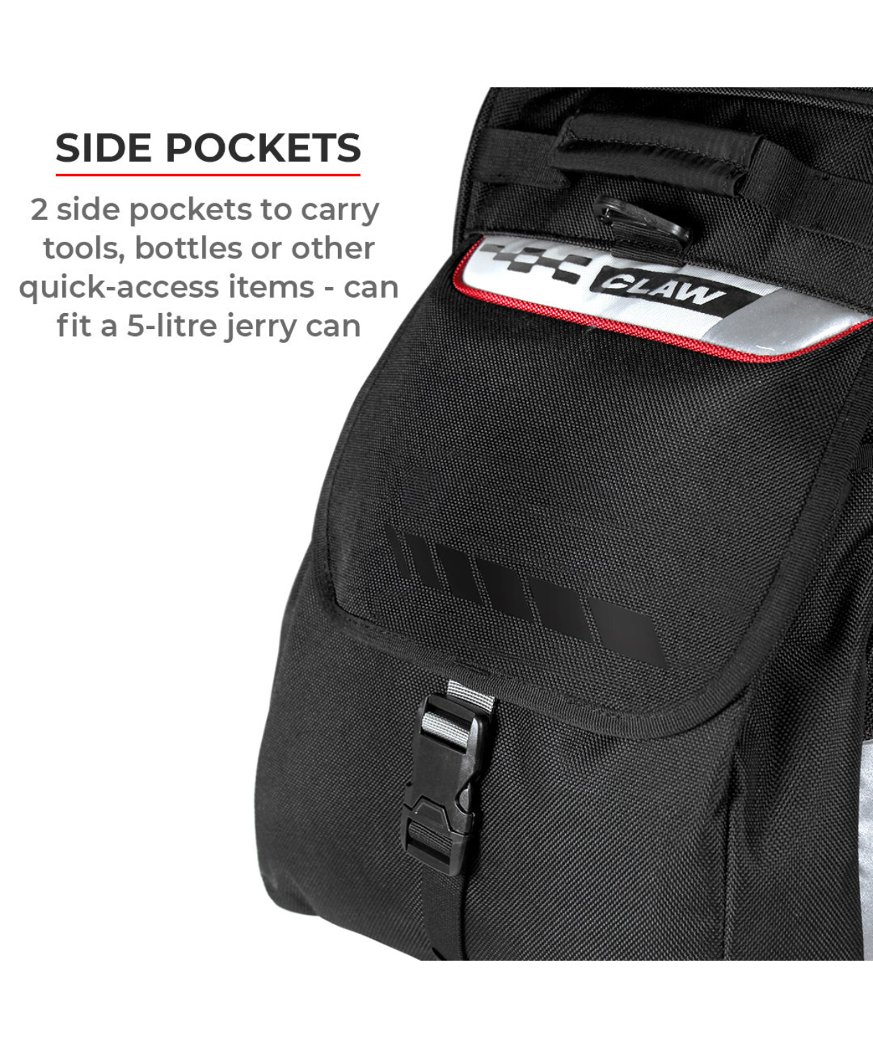 - 2 side pockets to carry fuel, tools, bottles, or other quick-access items – capacity is big enough to take a 5L jerry can